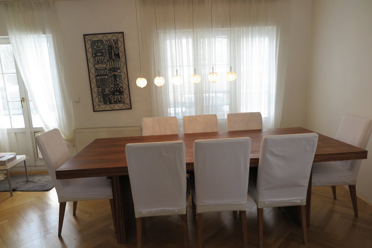 Dům je dobře dispozičně řešen, má tři nadzemní a jedno zcela obytné podzemní podlaží s velkými okny, kde se také nacházejí 3 ložnice, 2 koupelny, obývací prostor a velká místnost využívaná jako domácí kino či prostor na hraníí. V 1. nadzemním podlaží se nachází vstupní hala, prostorný obývací pokoj s krbem a francouzským oknem do zahrady, kuchyň, jídelna, šatna, technická místnost, koupelna s WC a garáž pro 2 auta s roletovými vraty.
